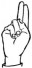 На ћирилици написано ЊЕГОСЛАВ ЉУБОМИРОВИЋ састоји се из 19 слова [?]. Исписано ћириличном једноручном азбуком за глувонеме:
